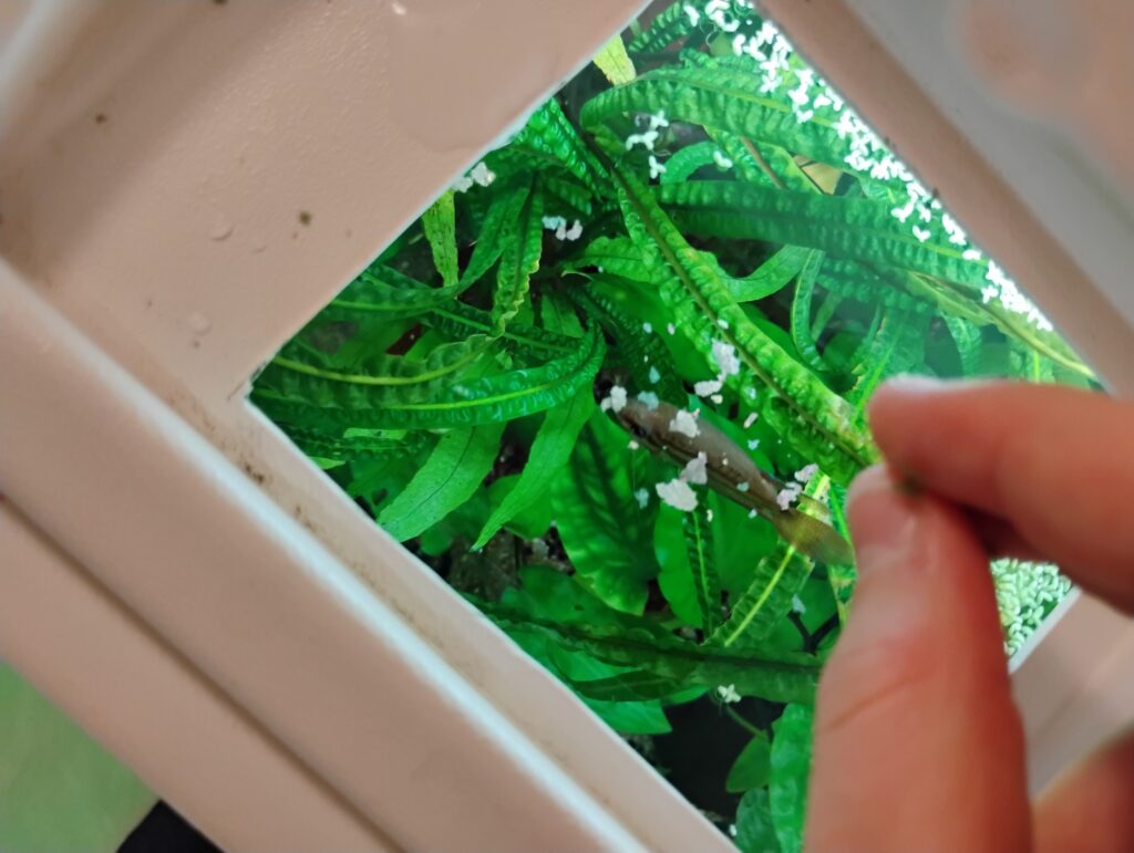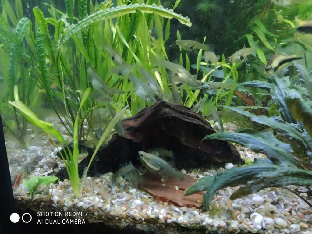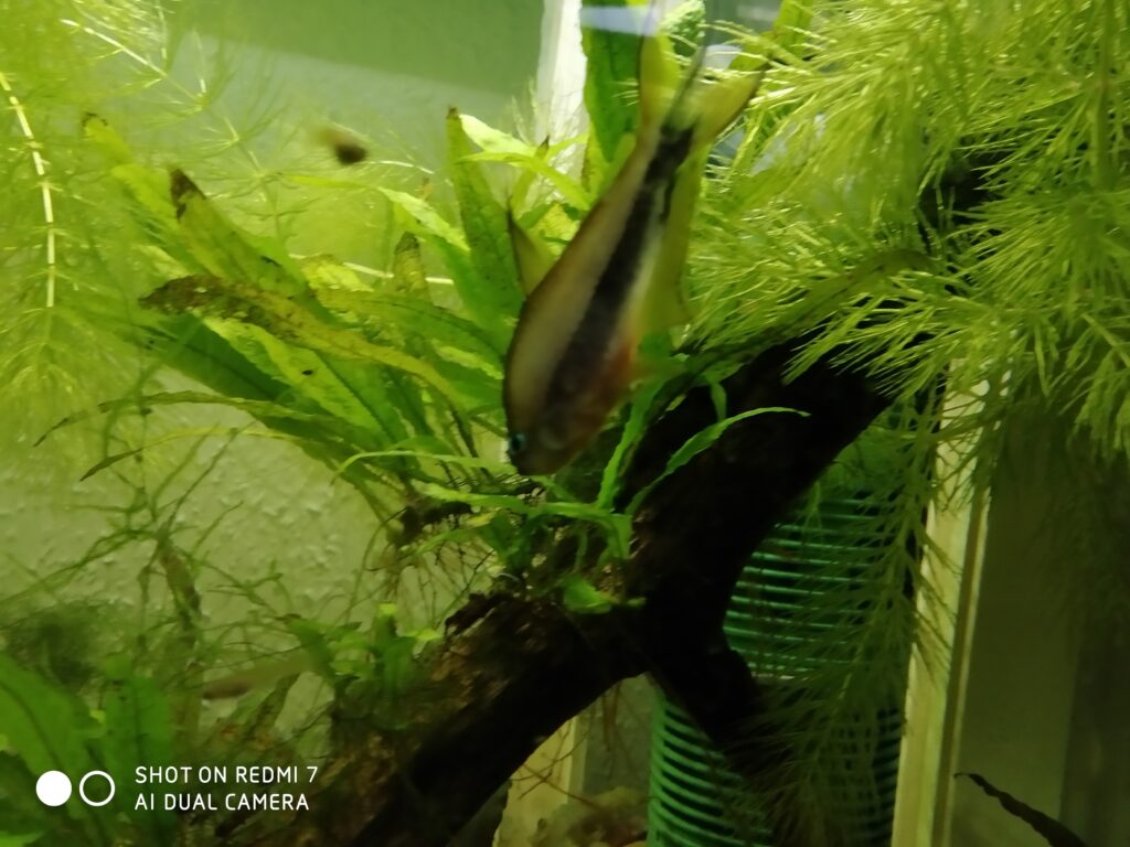 ich musste Nyx früher in das größe Aquarium um setzen weil sie sehr gekloppt wurde und dabei habe ich ausversehen eine Fischlarve von Nyx und Noctis mit rüber gebracht, und jetzt wächst sie gut heran 😄