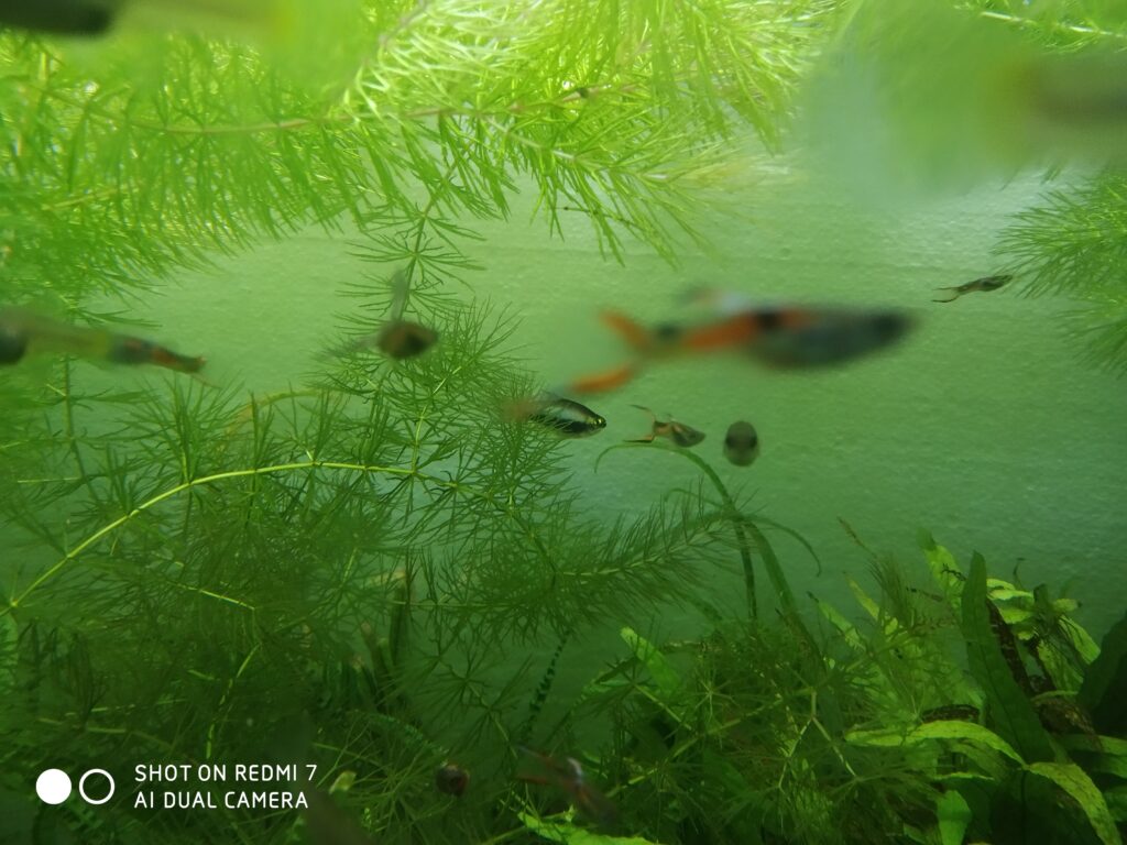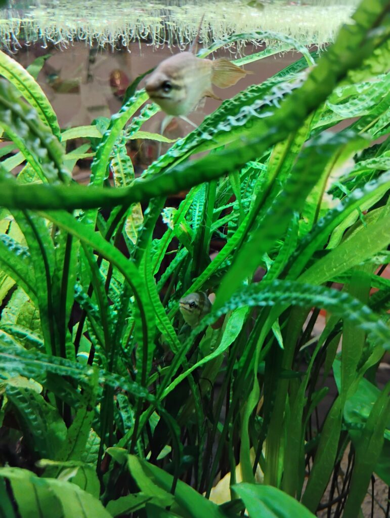 Hallo, Leute ich habe gerade mit Io getrickst als ich ein Foto machen wollte habe ich aber gesehen das Pandora vor der Kamera weg geschwommen ist und sich im Hornkraut versteckt hat. Und jetzt Versuche ich sie an mein Handy zu gewöhnen.