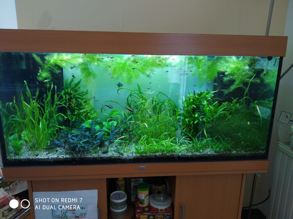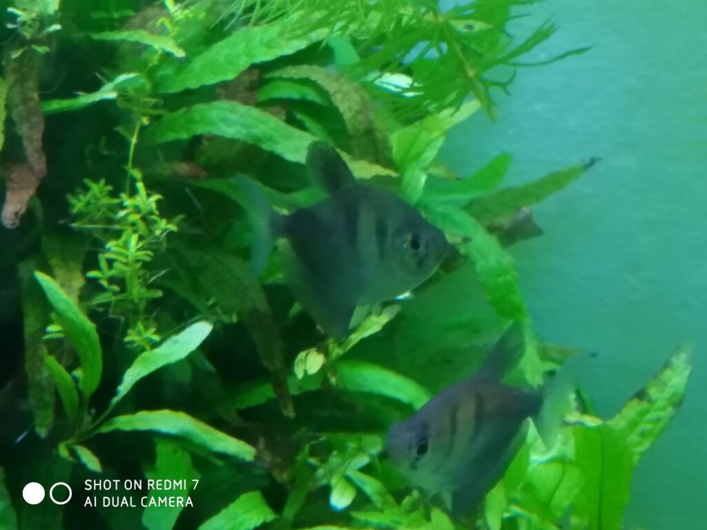 Hallo Leute, in Papas Aquarium leben auch viel andere Fische aber meine Kaisersalmler haben sich schon gut eingelebt, zum Beispiel in Papas Aquarium leben auch Trauermantelsalmler die sind ungefähr so groß wie ein Kaisersalmler Weibchen, aber sie sind nicht von Natur aus Aggressiv und bilden auch keine Revier