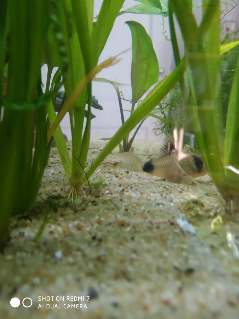 Hallo Leute, ich habe gesehen das meine Wels Wusline sich auf einem Blatt entspannt und Mittagspause vom Putzen macht.